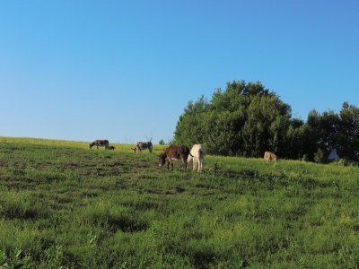 Le 15 juin, j’ai ouvert mon deuxième pâturage. Le premier exposé au sud et sablonneux était totalement brouté. Les ânes sont maintenant dans un champs exposé au nord, argileux avec un marais, un bois et on de quoi brouter jusqu’en septembre.