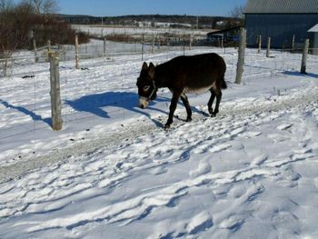 Glace, verglas, refroidissement soudain peuvent transformer le parc d’hiver en un piège mortel pour vos ânes. Voyons comment éviter cela.