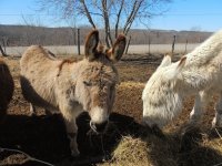 Les ânes une fois les mangeoires vide se baladent un peu partout, broutent…