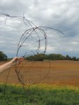 Un peu plus loin un des poteaux de fer qui tient ma clôture a été tordu par la machinerie agricole.