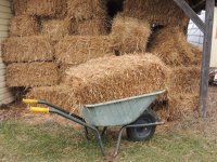 Actuellement, les ânes mangent de la paille (20 kg par repas pour 9 ânes) et du foin plus 6 kg de foin environ. Ils vont ensuite grignoter au pâturage et reviennent plusieurs fois dans la journée remanger un peu de paille. Lorsqu’il fera froid, j’augmenterai la ration de foin progressivement.