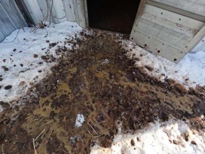 Il fait moins 28, les ânes ont abondamment uriné devant la porte. Avec le gel, cela reste dur, mais dès que le temps va réchauffer, cela sera boueux. La solution ? Une entée bétonnée.