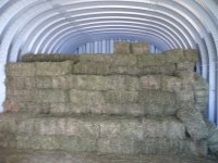 Le foin est stockable facilement dans un bâtiment, facile à manipuler quoique le rangement des balles soit assez physique.