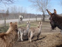 On sent une forte nervosité chez les ânes. Seul Garou, Julietta et Chocolat, les trois plus petits partent d’un pas prudent vers le Taureau. Ils s’arrêtent à une dizaine de mètres, le regardent immobile. Ils font demi-tour et se sauvent en courant pour rejoindre les copains.