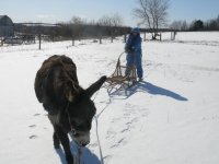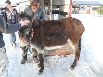 Pour un âne âgé, qui n’a jamais travaillé, il a été enthousiaste, a accepté sans soucis le harnais et de nous tirer.