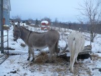 Aujourd’hui il fait gris, moins 10, Paul a passé l’après midi seul dans le pâturage à gratter la neige pour trouver de l’herbe… et à me regarder charrier des luges de bois d’un Å“il réprobateur ! Les luges, c’est lui qui les tire… il était derrière la clôture et me voyait faire et hennissait bruyamment chaque fois que je passais devant lui ! J’en profitais pour lui faire un petit câlin et il repartait brouter jusqu’à mon passage suivant. En fin d’après midi je vais le voir, il est rentré à l’âsinerie. Il mange de la paille aux mangeoires avec ses copines. Il manque Capucine. Je la cherche. Elle est dans le bâtiment. Dès qu’elle m’entend, elle sort. Elle boite du pied avant gauche. Je l’examine, je ne vois rien de spécial. À suivre