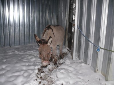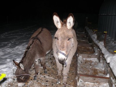 Ils étaient tous blottis les uns contre les autres dans l’asinerie. Des qu’ils m’ont vu, ils sont sortis et m’ont accompagnés jusqu’à`la porte et sont repartis dans leur abri.