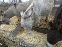 Les ânes se réfugient dans l’âsinerie à l’abri des intempéries.
