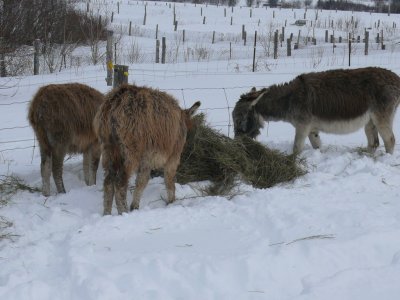 Une forte tempête a frappé le Val à l’âne. Vents violents, forte neige, rien n’a été épargné à nos ânes. Il a fallu les dégager à la pelle, ils étaient bloqués dans la grange...