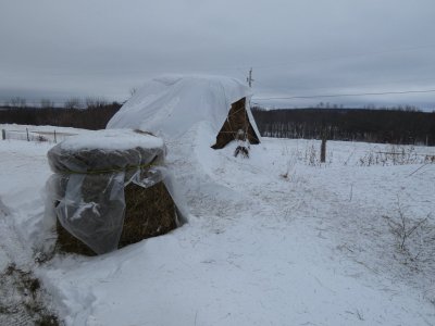 Ce qui reste du foin sous la bâche sera pour le printemps.