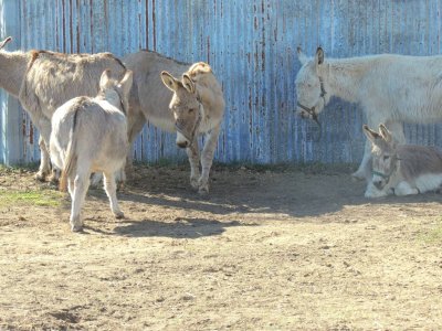 Le dimanche matin, Charlie, surnommé « le Houdini des ânes » a sauté une clôture de 1m20 malgré sa petite taille et il est venu rejoindre le troupeau. Tout c’est bien passé, pas de bagarres. Comme une deuxième ânesse est entrée en chaleur, la copine de Charlie, nous avons donc décidé de mettre Garou et Julietta dans un enclos contigu au troupeau pour éviter tout conflit.
